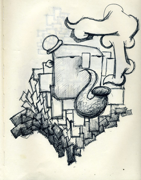 I’ve been working with some new hat sketches and some new sketches for installations. I am still fighting to include a graphic element in all of the installation work, despite the fact that professors claim that the work is stronger without it. But I wonder if it is worthwhile to be strong work if at the same time it loses the piece that is fundamentally me, the author. How do I reconcile cutting myself completely out of the piece? I don’t think I want to, so I’m not going to do it.