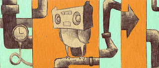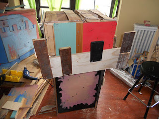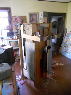 It has been a massively productive year. I have no complaints with my work ethic. My writing ethic seems to have fallen a little by the wayside, however. I think I left off on some images of my large scale robots. Each robot served as an internal location in which to frame a group of paintings and drawings.