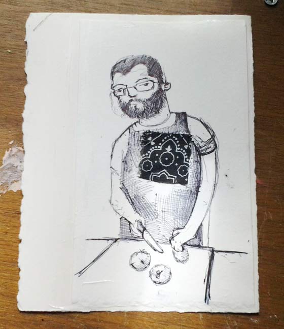 I have no issue selling paintings or drawings.  I have little trouble giving paintings and drawings away.  I’ve spent the last two years making time consuming work specifically to give away in an elaborate fashion.  I have torn many a sketchbook page out and given it to people in restaurants and coffee shops, and yet, the idea of selling a sketchbook seems so foreign.  How much does it cost?  They aren’t terribly personal in that I write down my feelings or incredible secrets.  They don’t have any information in them that will implicate me in any crime.  I don’t understand why it seems so necessary to keep all of them.  I don’t know why it bothers me to sell one.  Perhaps that is why I had such a problem with the Sketchbook Project from Art House Co-op.  That is a terrific project and an incredible concept. ( a traveling library of sketchbooks for any of you who haven’t heard about it )