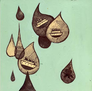 I really hadn’t had much desire to work on anything Monday or Tuesday.  Sleep was king.  It was nice to even want to make something.  I had had the first page of a tiny zine which I had set up during my illustration class a couple weeks ago.  It was sitting on my laundry shelf, clearly something that I found when I was searching through pockets before doing my laundry, but this morning I felt that I should work on it.  It is nearly April and I have been thinking about fishing quite a bit, so I decided to use the drops as book ends to three fishing related images in the book.  I drew three images this morning, hated one of them, gessoed over it and redid it tonight.  I then scanned it in to make some more copies and ran the original over to my fishing buddy at the cafe where he works.