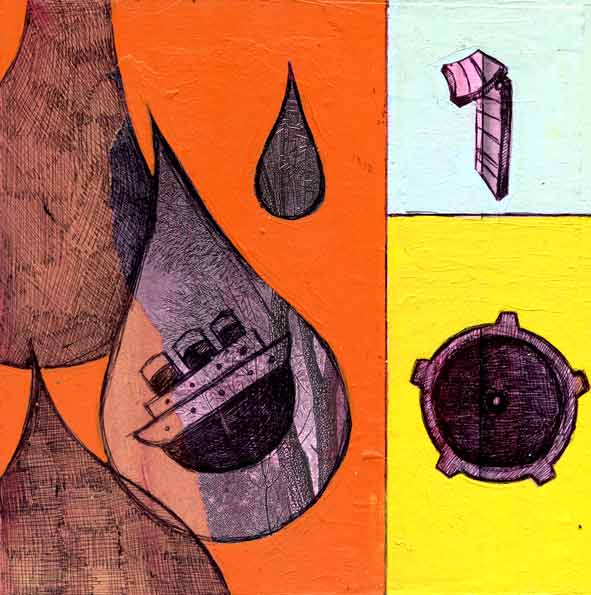 When I was asked to do a few piece for the Tenth Anniversary show at Artstream Studios and Gallery, I immediately assumed that the gallery directors wanted more of the same type of work that I had submitted in the fall, as it had done pretty well in sales. I struggled with this idea in my head for two months and naturally ended up with a couple days left to produce my artwork. I realized that I wasn’t capable of making those pieces again. There has been a shift in my thought, a desire to live life more seriously than I had in the past, to be a bit more conservative and not to make kids work for the rest of my life. I had been adding layers to pieces that weren’t working in a different series and that was turning out quite successful, so I determined that I would use the same method with these four pieces. Here are the completed pieces for Arstream.