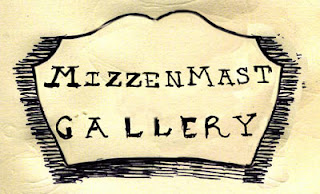 I decided upon the term Mizzenmast because in reading I have always been attracted to the sound of the word. Also, it is not the main mast, but the second mast. It made sense to me that since this is not a mainstream art event, but an event living in the substrata of the art world. This is going to be a great project. I have already enlisted my friends Anne Buckwalter and Pilar Nadal to submit and look to have several other great additions to the show. All of the work will be in miniature and clearly portable. Here is the first rendition of the logo.
