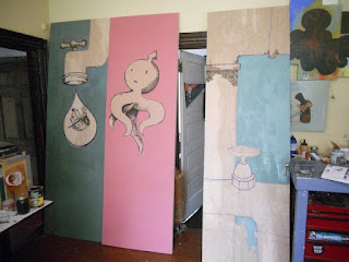 More specifically involving the ocean towns that I love, is the second project that I have started which I would like to share today. I have long wanted to create a pop up gallery on a ship. Currently a friend of mine, Anne Bryant, is sailing about on her vessel the Mimi Rose. I suggested the other day that we do a small portable pop up gallery and to my delight she liked and encouraged the idea. So today I set about looking up nautical terms and trying to think of a name for a small gallery. I looked through some old school illustrated seafaring maps.