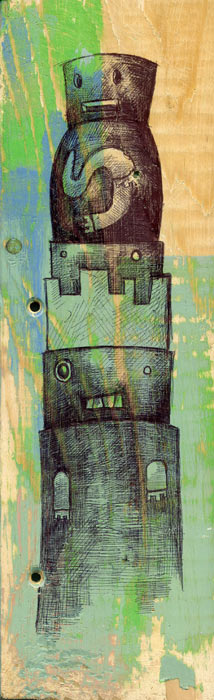 The towns that I live in, therefore, need to be close to or on the water anymore. Today, as I was creating totems which tell my own life stories and mythology, it only seemed appropriate to make a totem to the two cities that I love. There is not so much a nautical reference in the piece, but there is the idea of steadiness coupled with that which changes. Here is that totem: