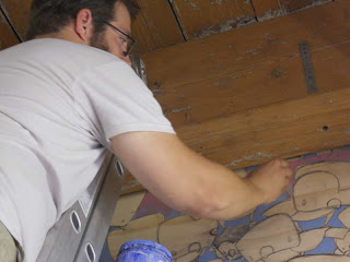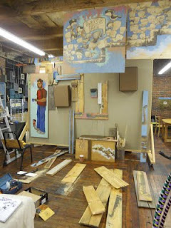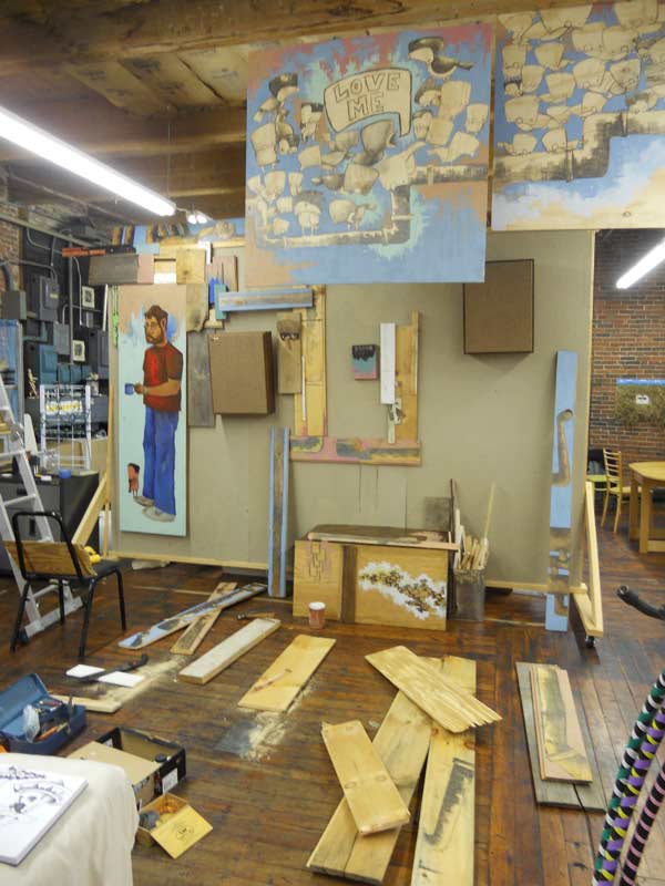 A couple weeks ago I took down two installations, threw the loose wood into my studio and jumped in my truck to go work for a weekend. Meaning that last week when I got home there was an incredible mess lying out on the floor for me. Most folks would decide to clean, but I decided to start building a seven foot tall robot out of wood.