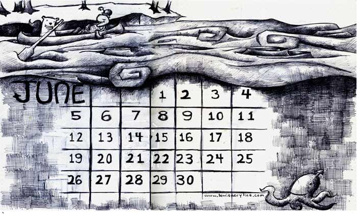 Today was a beautiful day.  The sun finally came out, and I managed to finish 4 out of 7 of the illustrations that I am supposed to complete for an e-book.  Nothing too exciting but hopefully some cash pretty soon.  Once I got a little bit done on that I was able to work on some projects that I have been meaning to get to.  The first project that I wanted to get to was the June calendar for the Bollard, a local newspaper here in Portland, ME.