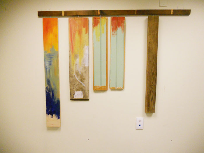 I also finally figured out a method of hanging and creating a piece out of a few boards that I have had grouped together in my head for ages now. They are interchangeable. I am toying with the idea of hanging the piece and inviting people to move the boards around. Let me know what you think.