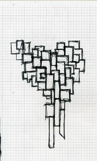 The tree does look a little different than in the sketch, but I’ve been thinking of the actual production of the pieces as a little more liquid, so that doesn’t really bother me that much. I think that I am attempting to approach a little of Barthes’ concept of Greek Rarus, or the concept of using chance and dispersion together to enhance the art making and viewing process.