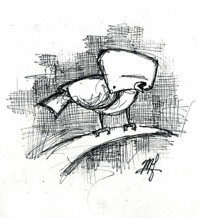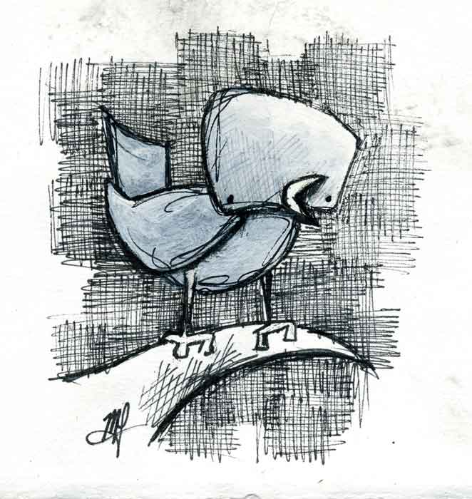 This bird is my favorite. I love the shape of his head compared to the shape of the wing, and oh so easy to get some loopy line work in. I love my new pens.
