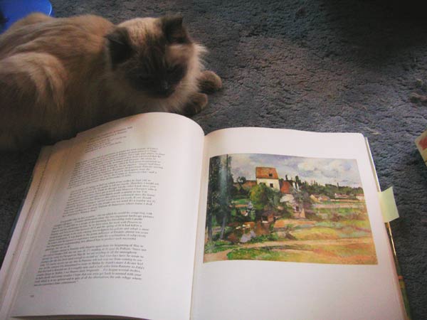On a completely different note, my cat was a total love bug today. It really helps to have a creature to take your mind off of the stress. Thought I’d show you just how big a fan of Cezanne he is.