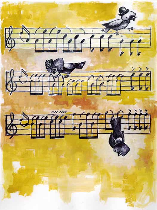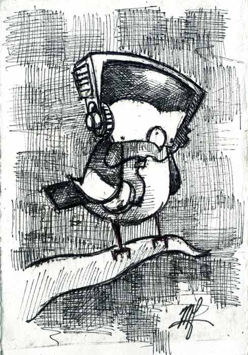 I put together 3 new drawings this morning and inked my big train piece a bit more. The train piece is not ready to show, but the three bird drawings are. The three drawings are also available over on the Etsy Shop for 10 bucks each.